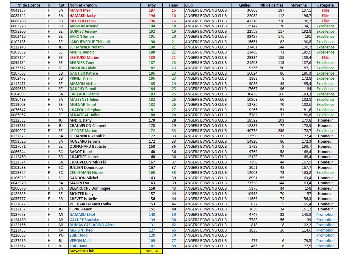 Consultation du listing national pour plus de détails : http://www.ffbsq.fr/listing national