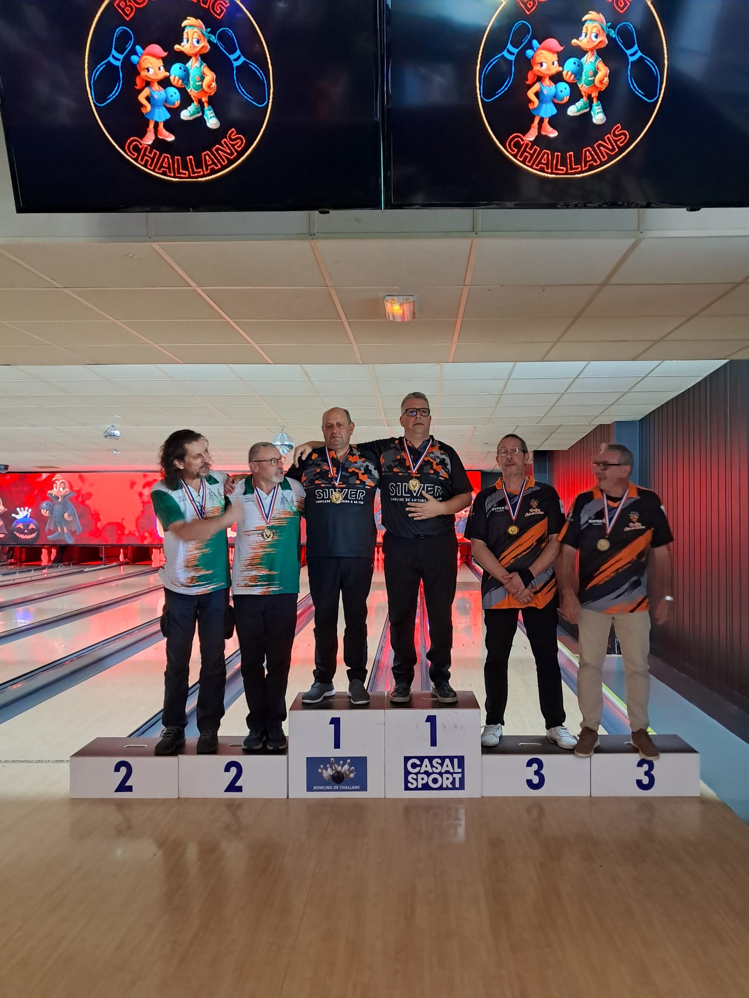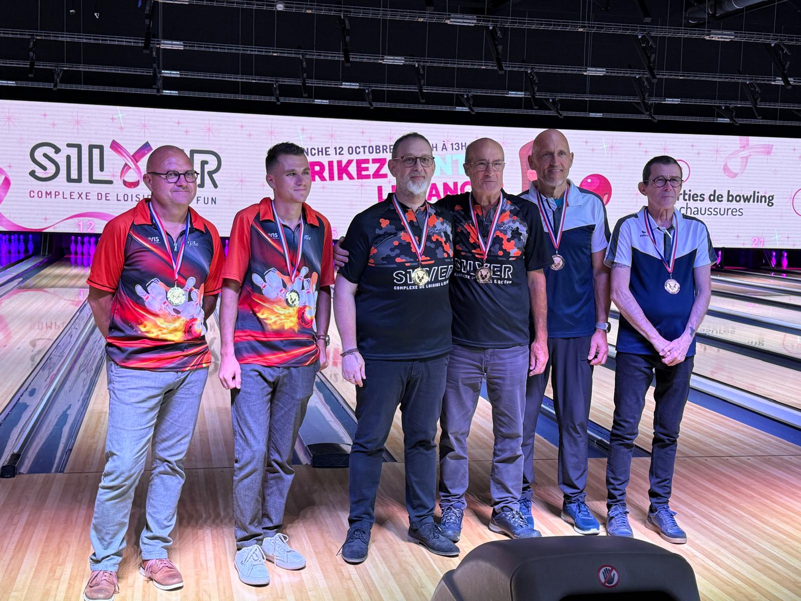 La seconde phase des Championnats Doublettes a débuté par la catégorie Honneur, le samedi 4 Octobre au Silver. Et c’est sur la plus haute marche du podium que nous retrouvons une équipe de l’A.B.C. composée de Yannick Le Hannier et Henri Bagot ! Elle s’est distinguée avec la meilleure partie scratch en équipe ainsi que la meilleure série scratch et la meilleure partie scratch pour Yannick qui finit premier au classement individuel avec une moyenne de 196,87 !!! La deuxième équipe composée de Julien Massenet et Michel Gandon termine à une très belle 5ème place derrière après-avoir effectué une jolie remonté au classement. Bravo à vous messieurs…